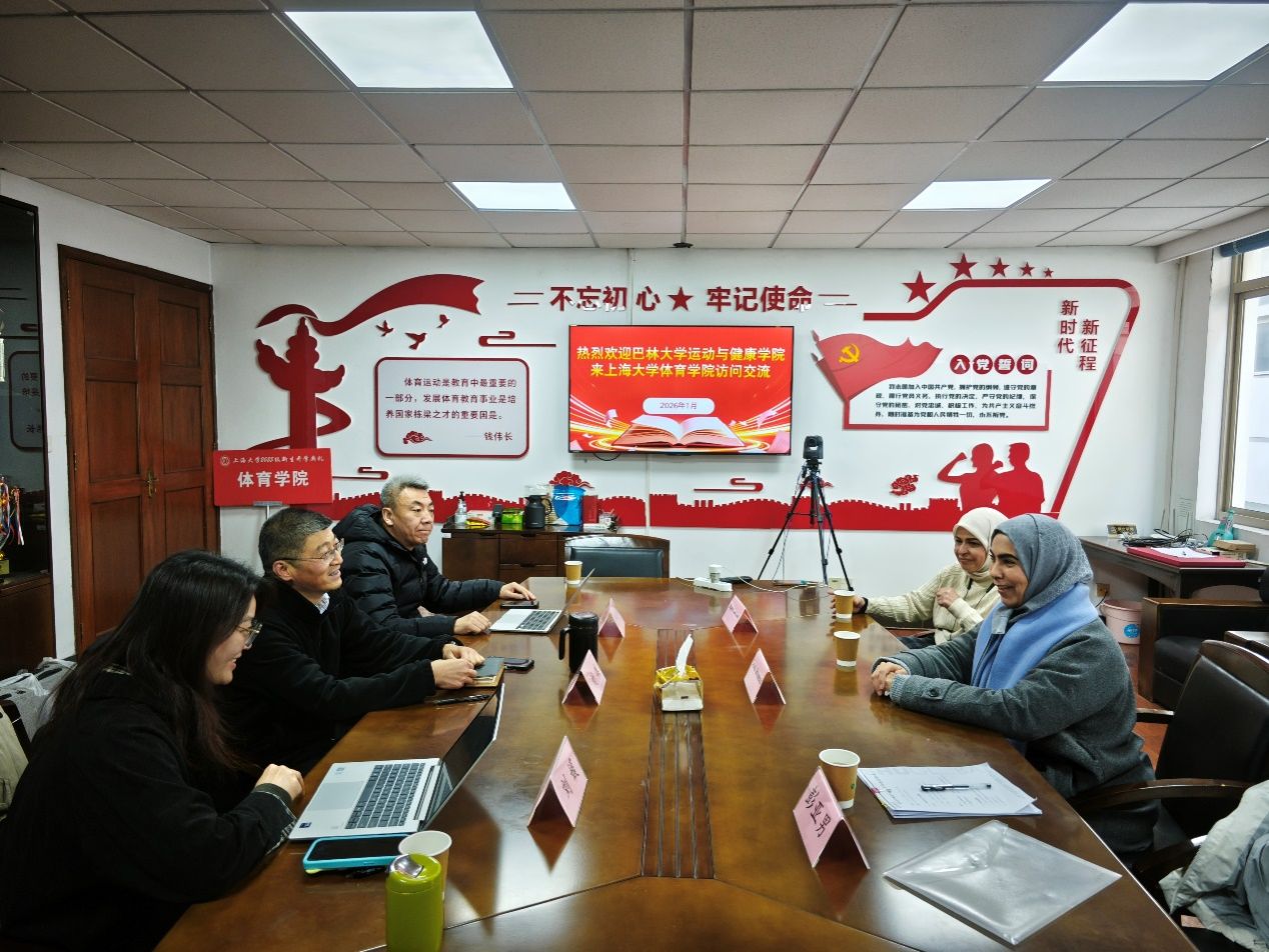 为深化国际体育教育交流,拓宽办学视野,加快国际化发展步伐,1月21日上午,巴林大学健康与运动科学学院院长Leena Mohammad博士、健康与运动科学学院护理系主任Magda Bayoumi女士一行莅临上海大学体育学院访问交流。上海大学体育学院院长刘兵教授、党委副书记兼副院长卢高峰、青年教师刘媛博士在训练馆会议室热情接待了来访嘉宾,双方围绕体育教育发展、学术科研合作、文化交流传播等议题展开深入座谈,达成多项初步合作共识。